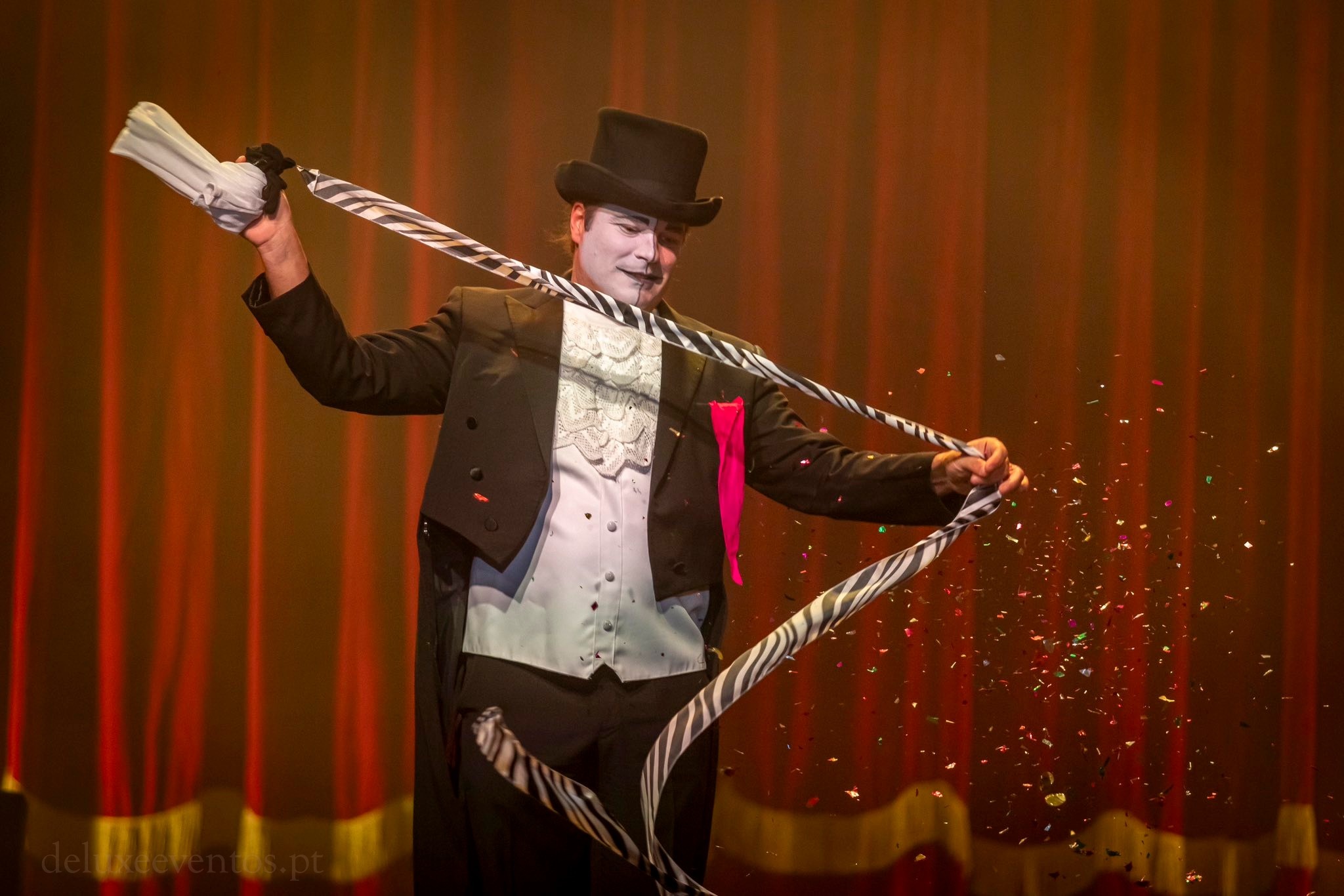Juntando um Mimo e um Mágico, temos dois artistas num único personagem: ilusionista, com magia de palco e de close up, e um comediante. A receita para o sucesso? Junte um pouco de diversão, dissolva a animação na interactividade e deixe-as marinar em lume brando até o público começar a ferver. Desenforme-as e polvilhe com umas risadas. Sirva a seu gosto.